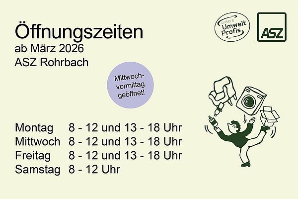 Mit 1. März 2026 ändern sich im Altstoffsammelzentrum Rohrbach die Öffnungszeiten, es ist dann zusätzlich auch Mittwoch am Vormittag von 8 – 12 Uhr geöffnet.