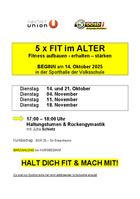 BEGINN 14. Oktober 2025 in der Sporthalle der Volksschule
